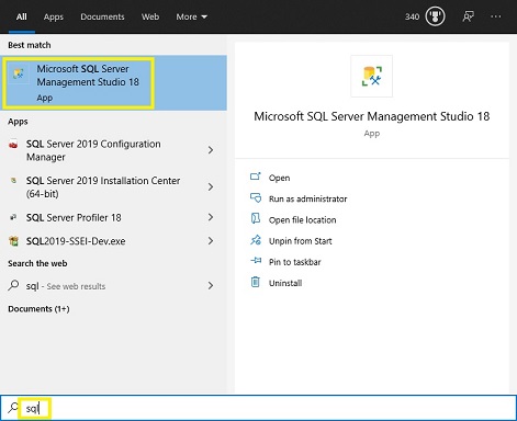 - Open the start menu and select 'Microsoft SQL Server'.