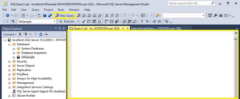 - Click on the 'New Query' button to open a new query window in SSMS.